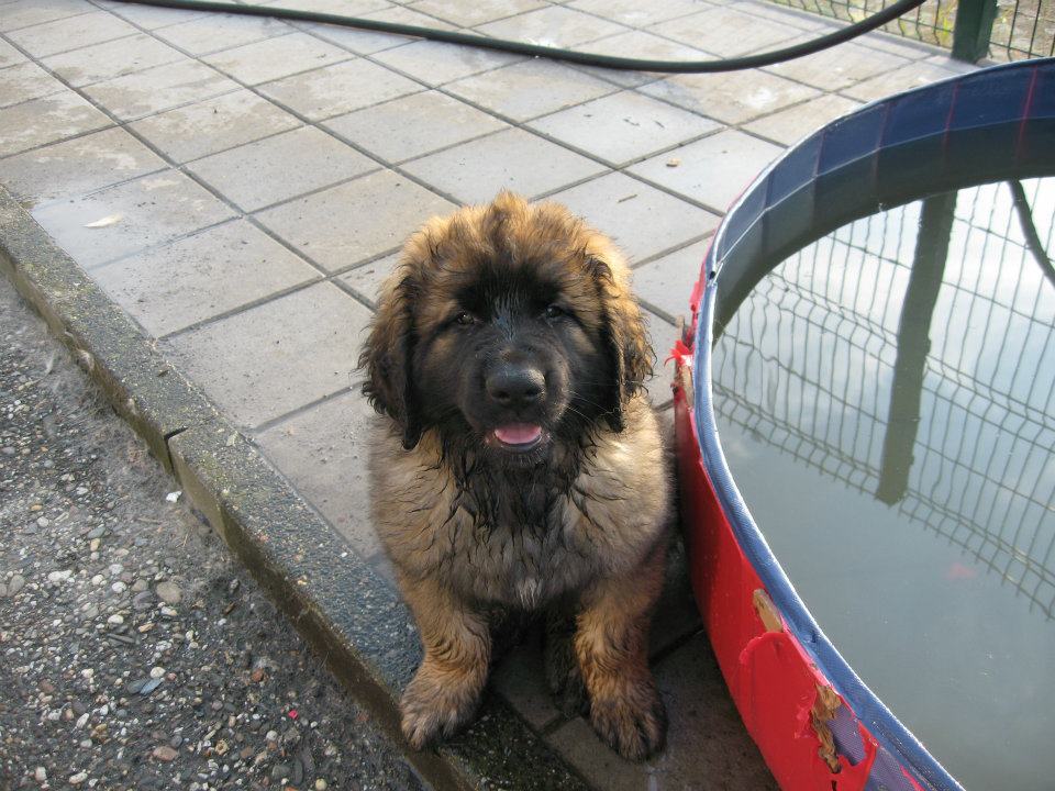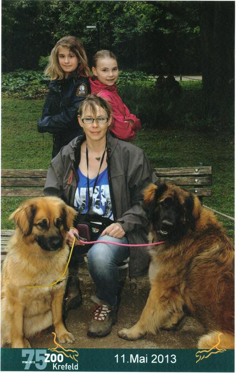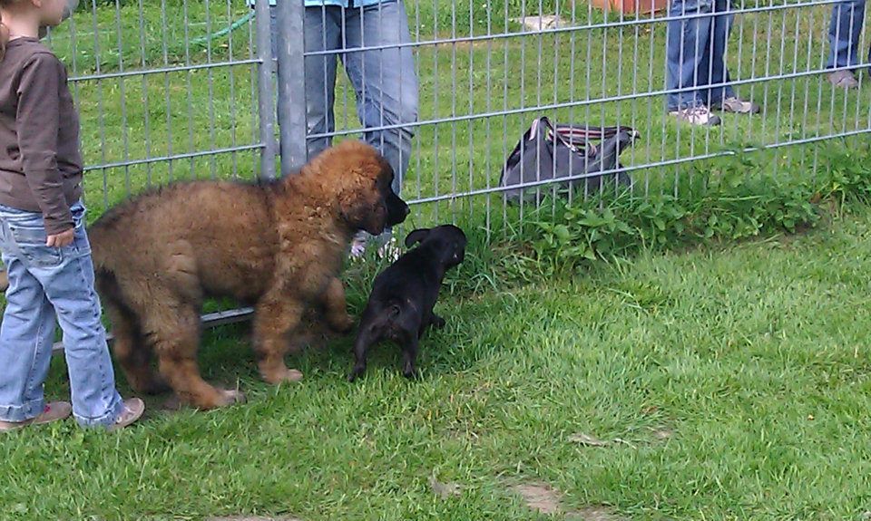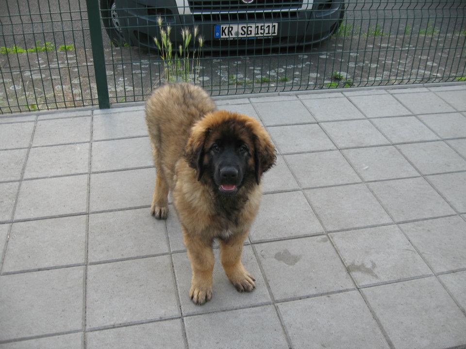 Kiss ist eine ganz tolle große und robuste Leodame. Sie sollte die "Urmutter" unserer Zucht, unseres Stammbaums werden. Leider wollten und konnten wir sie aus Gesundheitsgründen nicht in die Zucht nehmen. Sie ist auch eine ganz Liebe, aber aufgrund ihrer imposanten Größe, besonders, wenn sie sich am Zaun aufstellt, haben die meisten Menschen erst einmal gehörigen Respekt vor ihr. Sobald sich jemand dem Tor nähert, baut sie sich auf und macht ein Getöse, dass jeder "normale" Mensch erst mal die Flucht ergreifen möchte. Ich muss dann immer schmunzeln, da die Meisten nicht wissen, dass wenn sie reinkommen, der große furchteinflößende Hund plötzlich zum Schmusebären wird.